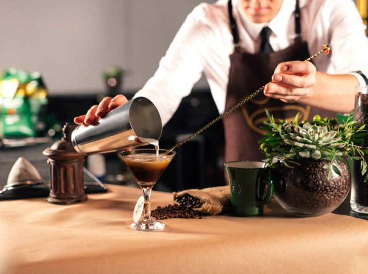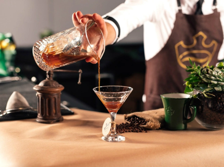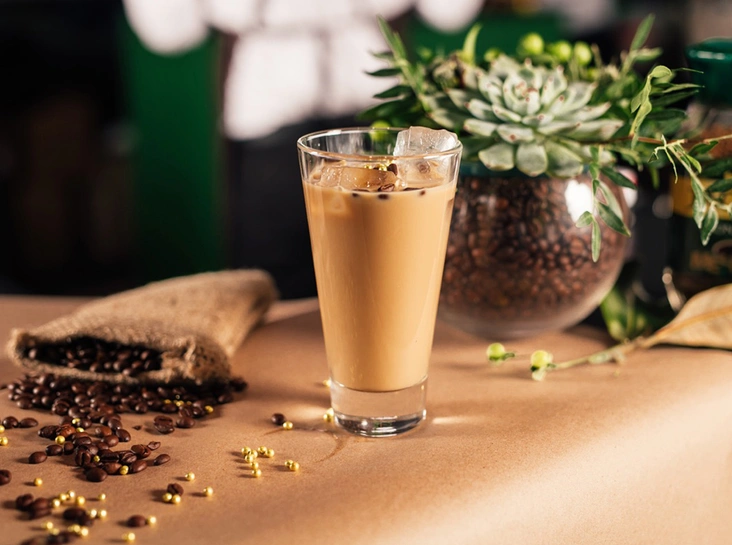 - Сварить кофе любым способом. Все ингредиенты налить в шейкер и взболтать.