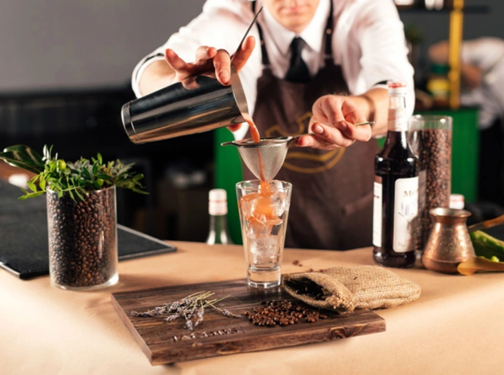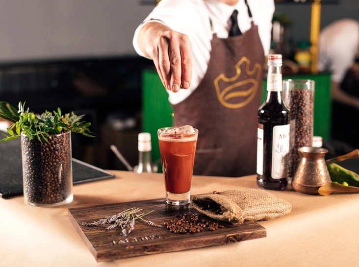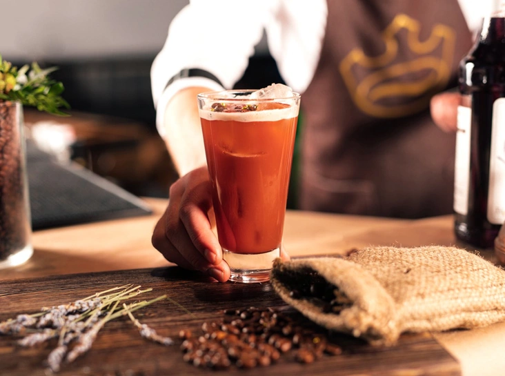 - Приготовить бокал и засыпать в него лед. Все перелить в хайбол и украсить кофейными зернами (читайте также: «Взбодритесь красиво: чем хороша косметика на основе кофейных зерен»), сушеной лавандой, кондитерскими шариками.