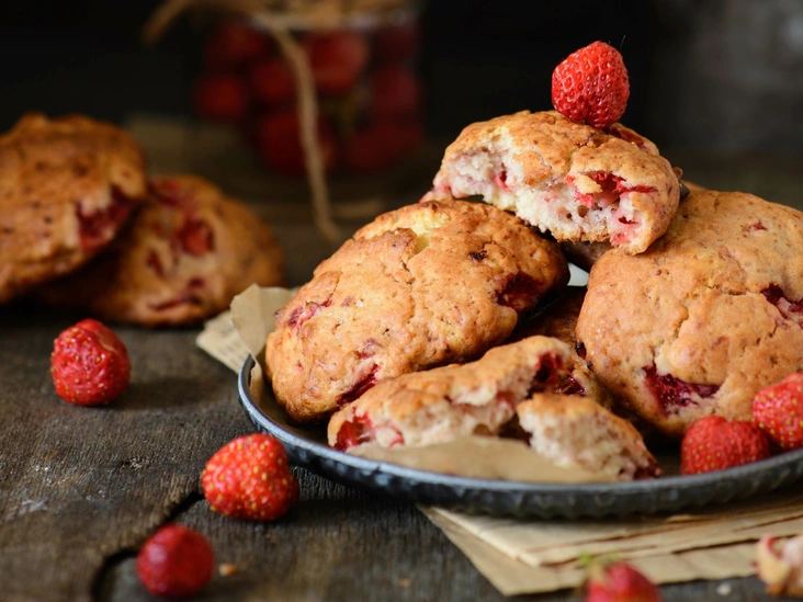 Эти традиционные английские булочки станут еще лучше с добавлением клубники. Здесь можно использовать сублимированную ягоду.