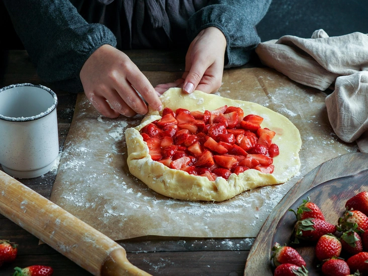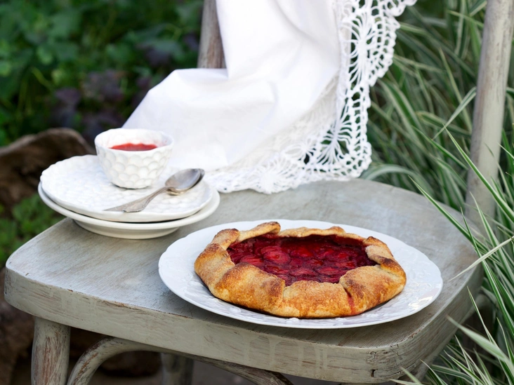 Этот десерт выдержан в актуально рустикальном стиле, но при этом предлагает сочность и деликатность клубники. На приготовление галеты уйдет примерно час, но ингредиенты лучше подготовить предварительно вечером.