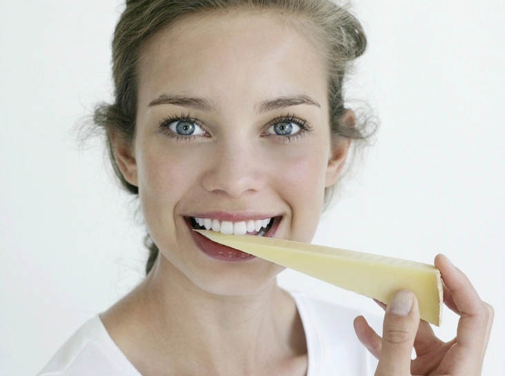 Это довольно калорийный продукт, и при его употреблении следует знать меру. Но, если вы не едите слишком много сыра, небольшой кусочек будет очень полезен для зубов. «Сыр содержит большое количество фосфатов и кальция, которые укрепляют зубы и кости, а также помогает сбалансировать уровень pH во рту. А это значит меньше разрушительной для эмали кислоты и меньше заболеваний в полости рта», — говорит Сайед.