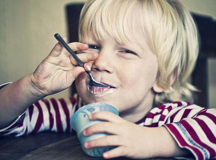 Йогурт — это мощный пробиотик, который способен восстанавливать микрофлору желудка. Этот продует также содержит кальций, калий, витамин B6 и магний, что делает его очень полезным для детей. Но не стоит забывать, что сегодня многие производители добавляют в йогурты сахар, чтобы сделать его приятнее на вкус для ребят.