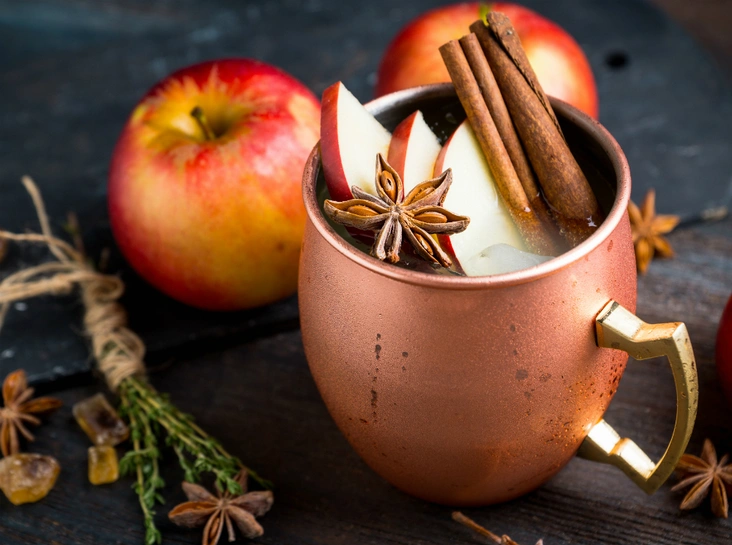 Горячий коктейль на основе кальвадоса и яблочного сока