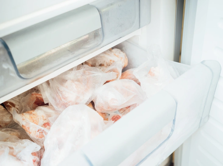 Красное мясо, куриное мясо и морепродукты следует замораживать лишь один раз. Повторная заморозка может повысить риск появления болезнетворных бактерий. Исключением станет только случай, если мясо было разморожено в холодильнике при температуре не выше 5°C. Тогда повторная заморозка безопасна.