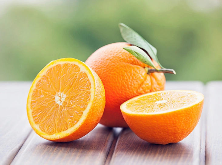 Подобно тому, как солнце согревает наше тело снаружи, ярко-оранжевые плоды апельсина согревают его изнутри. Витаминов, находящихся в этом не очень большом фрукте хватит настолько, чтобы помочь всем нашим жизненно важным органам. Самый главный витамин, который присутствует в каждом цитрусе — витамин С, помимо него апельсин включает в себя витамины группы B, азотистые и пектиновые вещества, провитамин А, клетчатку, золу, фитонциды и минеральные вещества. Сок апельсина улучшает обмен веществ, нормализует пищеварение, способствует выведению желчи, а также снижает уровень холестерина, таким образом, уменьшая риск сердечно-сосудистых заболеваний. Кстати, именно поэтому одно из самых популярных украшений горячих (и чаще всего жирных) блюд в ресторанах — апельсин.
