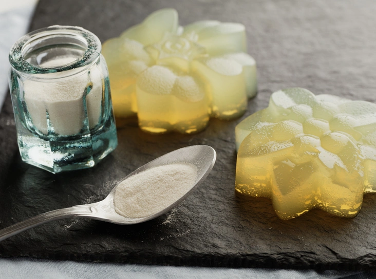 Про него можно сказать так: не каждый человек слышал, но каждый хоть раз пробовал. Агар-агар часто используют в кулинарии в таких продуктах, как студни, суфле, мармелад, зефир, различные торты. Например, он присутствует в «Птичьем молоке» и в десерте «Павлова». Сама составляющая производится из бурых и красных водорослей и представляет собой порошок, который перед использованием нужно развести в воде и сильно нагреть. Интересно, что агар-агар – растительный заменитель обычного желатина. Его основное отличие в том, что агар-агар сильнее «схватывается» и может, нагреваясь и остужаясь, многократно переходить из жидкого состояния в студенистое и наоборот. В остальном оба продукта похожи, и вы можете сделать замену из расчета 1 грамм агар-агара на 8 граммов желатина.