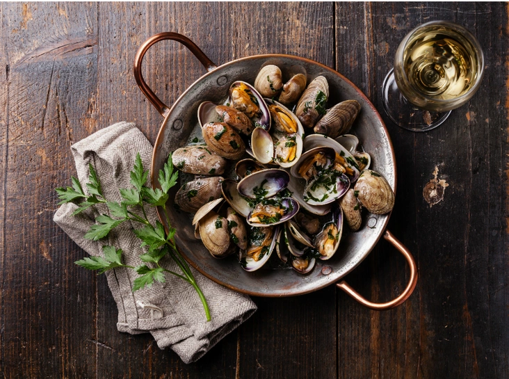 Для начала необходимо ополоснуть ракушки вонголе водой и посмотреть, нет ли открытых. Если такие есть, их нужно выбросить — они испорчены.
