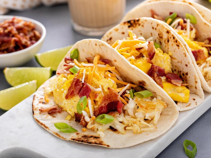 В будние дни не у всех есть время на полноценный и интересный завтрак, так что чаще всего мы выбираем проверенные и быстрые варианты, по типу кофе и бутерброда. Но в выходные просто необходимо разбавлять свой рацион, чтобы не пропало желание пробовать новые блюда. Один из таких вариантов — тако с омлетом на завтрак. Блюдо состоит только из полезных и питательных ингредиентов: яйца дают нам белок, авокадо полезные жиры, а острый соус помогает очищать организм от токсинов. А если вы хотите сделать завтрак максимально низкокалорийным, уберите бекон и сосиски. Итак, приступим к готовке!