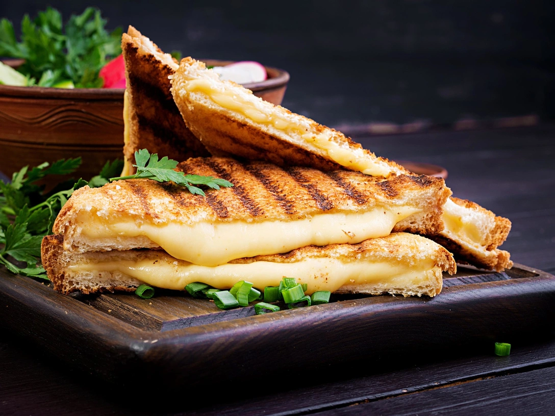 Готовьте на горячей сковороде, пока хлеб не станет золотистым снаружи, а сыр не расплавится, примерно по 3 минуты с каждой стороны. Переложите бутерброды на тарелки и сразу подавайте на стол.