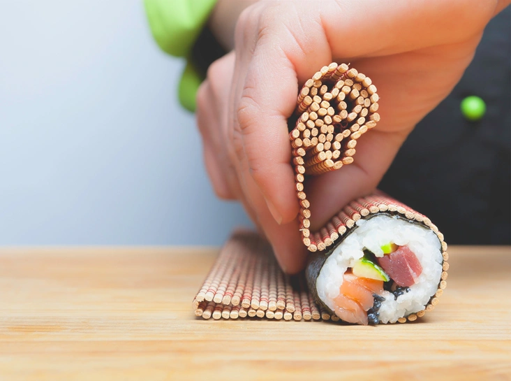 Роллы, приготовленные дома, имеют, как минимум, один неоспоримый плюс даже при не самом идеальном внешнем виде ─ вы точно знаете, что и в какой степени свежести туда положили. Для рецептов концепт-шефа ресторана японской кухни «Макото» Федора Слуцкого прежде всего понадобятся рыба (слабосоленые лосось и тунец, копченый угорь), творожный сыр (аналог знаменитой филадельфии) ─ например, Cremette от Hochland и рис для суши.