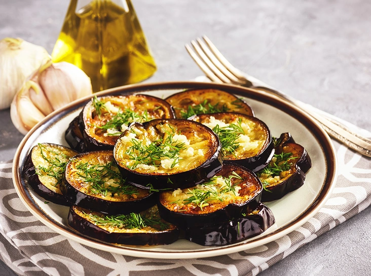 - После этого обжарьте баклажаны в масле и обсушите на бумажном полотенце.