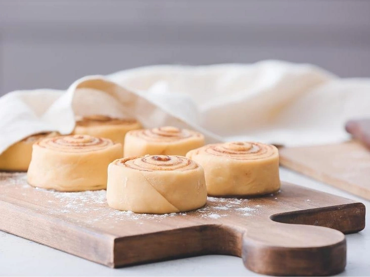 Знатоки настаивают на том, что тесто для синнабонов лучше всего готовить в течение двух дней. В первый тесто замешивается накануне выпечки и оставляется медленно подниматься в холодильнике в течение ночи. На следующее утро тесто можно раскатывать, формировать булочки, наполнять их смесью корицы и сахара и выпекать. Так тесто становится ароматнее, а раскатывать его в холодном виде намного легче, и спирали формируются лучше.