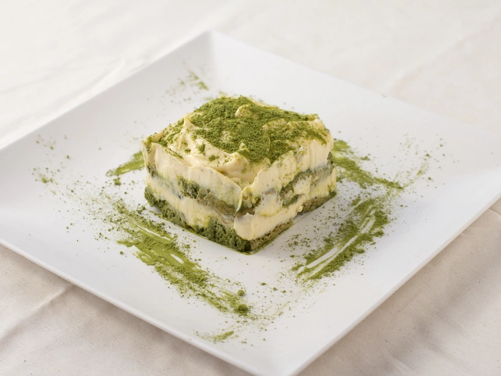 Сверху тирамису посыпать матча и отправить в холодильник на 4-5 часов.