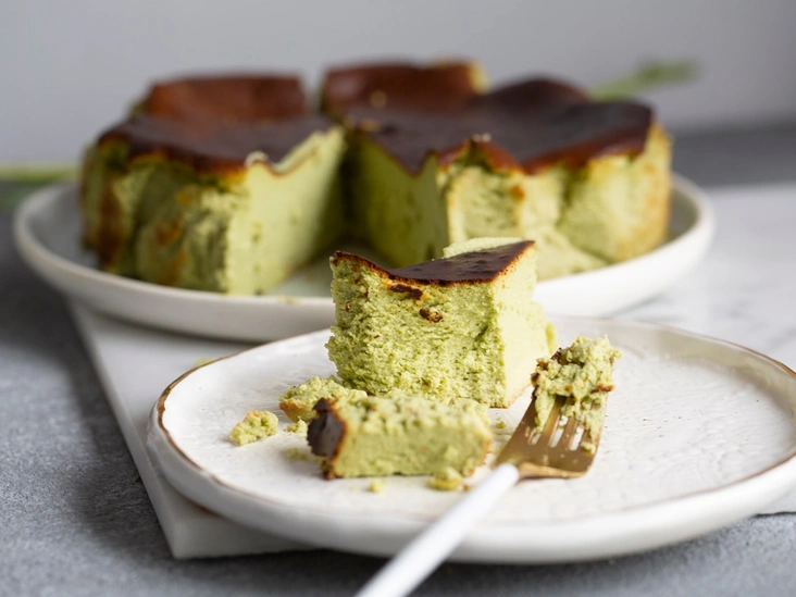 Застелить 15-сантиметровую форму двумя слоями бумаги для выпечки и обрезать ее так, чтобы она выступала на 3–4 сантиметра. Разогреть духовку в режиме конвекции при 240 градусах не менее 30 минут и выпекать чизкейк в течение 30–35 минут, пока корочка не станет темно-янтарной и почти не обуглится, а середина все еще будет «трястись» к концу выпекания.