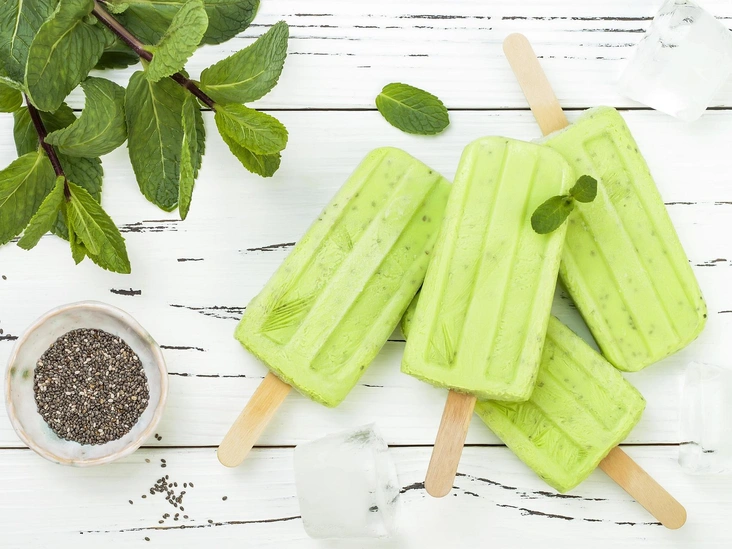 Смешайте все ингредиенты, не забыв украсить измельченным яблоком, и разлейте по формочкам. Добавьте палочки для мороженого и уберите в морозильную камеру на пару часов (в идеале — на ночь).