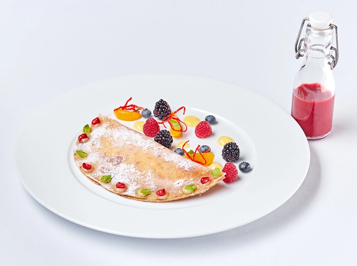 Гречишный блинчик с цитрусовым суфле и лесными ягодами