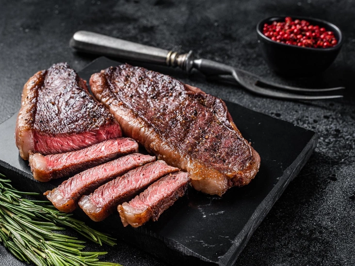 Ужин: стейк из говядины, салат с авокадо, шпинат в сливочном масле, 2 дольки черного шоколада и чашка черного чая