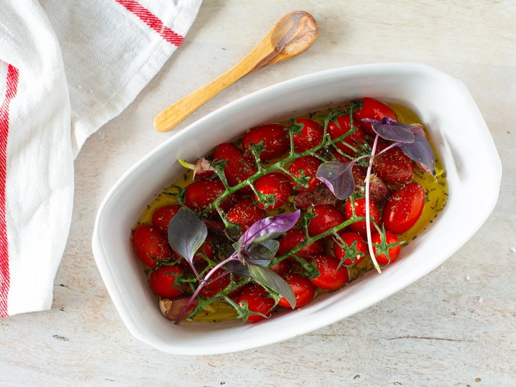 8 жареных помидоров сорта «Рома» или 8 консервированных сливовидных помидоров без жидкости
