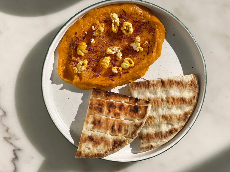 В этот потрясающий морковный хумус хочется макать не только лепешки, но и пальцы, и все, что под руку попадется. Попробуйте повторить на своей кухне.