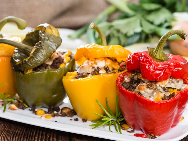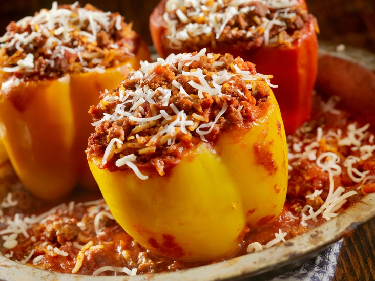 Посыпьте перцы пармезаном и запекайте в духовке еще 15 минут.