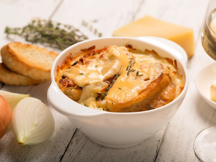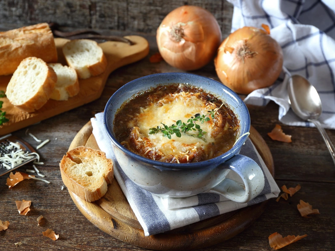 Луковый суп является одним из самых известных и популярных блюд классической французской кухни, который сегодня почитается не только на родине, но и во всем мире. Существуют разные версии его происхождения, однако основная гласит, что блюдо появилось во времена правления Людовика XV — согласно легенде, однажды французский король, страстно желая поужинать, не нашел на кухне своего охотничьего домика ничего, кроме лука, шампанского и сливочного масла. Смешав все ингредиенты вместе, монарх создал суп, который впоследствии стал излюбленным блюдом гурманов Франции.