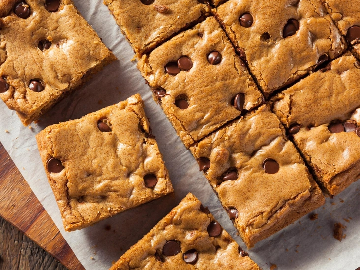 Всыпьте соль, муку, соду, смешайте с жидкими ингредиентами. Сверху посыпьте тесто шоколадной крошкой.