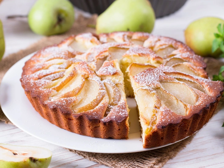 Равномерно распределите тесто поверх груш на сковороде. Накройте крышкой и поставьте на медленный огонь. Готовьте 30-35 минут. Затем осторожно переверните пирог (груши должны быть сверху) и можете подавать с мороженым или взбитыми сливками.