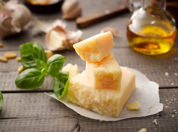 Соберите концы марли и завяжите. Нагрейте сыворотку до 60 градусов и опустите туда шар с сыром. Затем переложите сыр прямо в марле в форму. Через 10 часов можно вынуть сыр из формы и переложить в пищевой контейнер, после чего оставить еще на 35 часов. По истечении времени сыр нужно вынуть из рассола и оставить сохнуть — не забывайте регулярно переворачивать сыр, чтобы он сох равномерно. Как только корочка стала сухой, переложите сыр в помещение для выдержки — итальянцы выдерживают свой традиционный пармеджано в течение года.