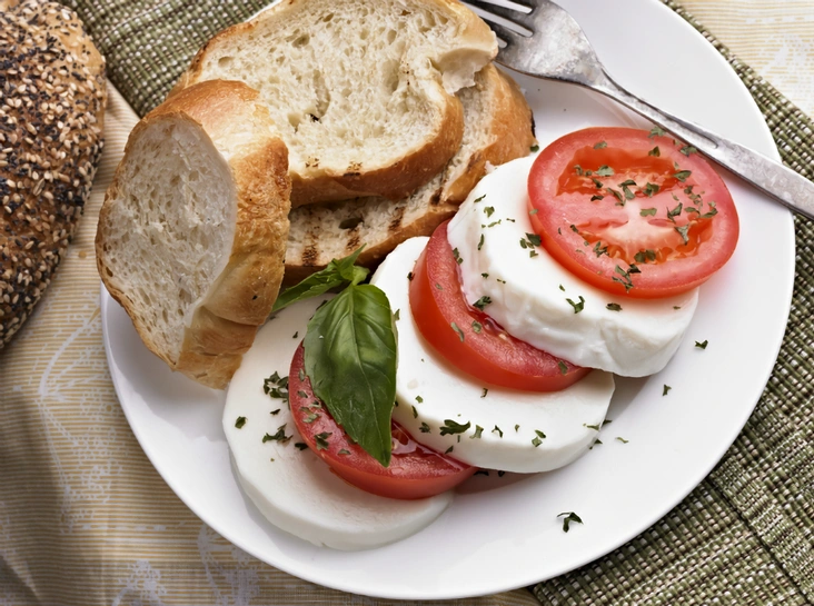 Молоко сильно нагрейте, но не дайте ему закипеть. Влейте сок лимона и разведенный фермент. Как только сыворотка начнет отделяться, выключите плиту и оставьте будущий сыр примерно на 10 минут: у вас должен получиться единый сырный блин вязкой консистенции. Далее слейте сыворотку, а сыр отожмите. Теперь нагрейте два литра воды до первых признаков закипания, посолите ее и опустите туда ком сыра на 3-5 минут. Сыр получается тягучим, мягки и податливым — разомните сырную массу, периодически нагревая её при снижении пластичности. В сыр можно добавить укроп или базилик, так он приобретет неповторимый аромат. Придайте сыру форму маленьких шариков или оставьте единым комом.