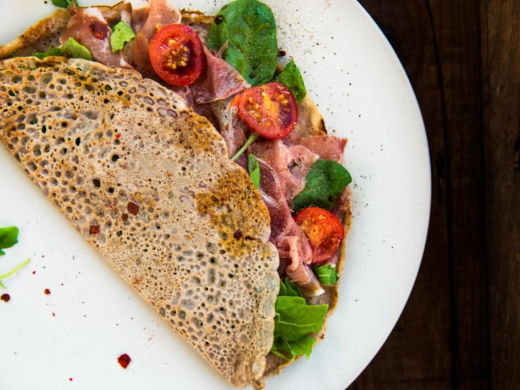 Предлагаем вам приготовить гречневый блин с начинкой из ветчины, куриного яйца, сыра и спаржи. Такое здоровое и насыщенное начало дня зарядит вас позитивными эмоциями, а гречневый блин станет вашим любимым завтраком.