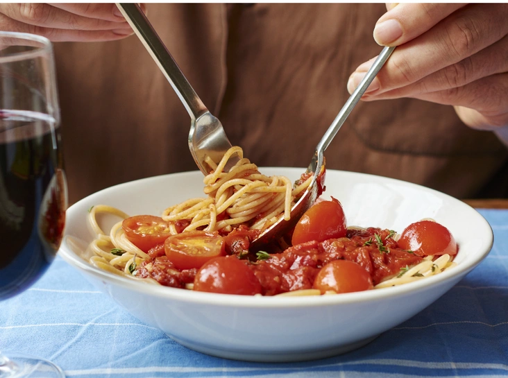 И если с остальными видами пасты проблемы возникают редко, то когда дело доходит до спагетти, многие теряются. Стоит запомнить, что классическим и правильным способом употребления этой разновидности пасты является использование вилки и ложки: в правой руке вы держите вилку, которой подхватываете несколько ниток макарон, после чего вы помогаете себе ложкой, где сматываете их в небольшой клубок.