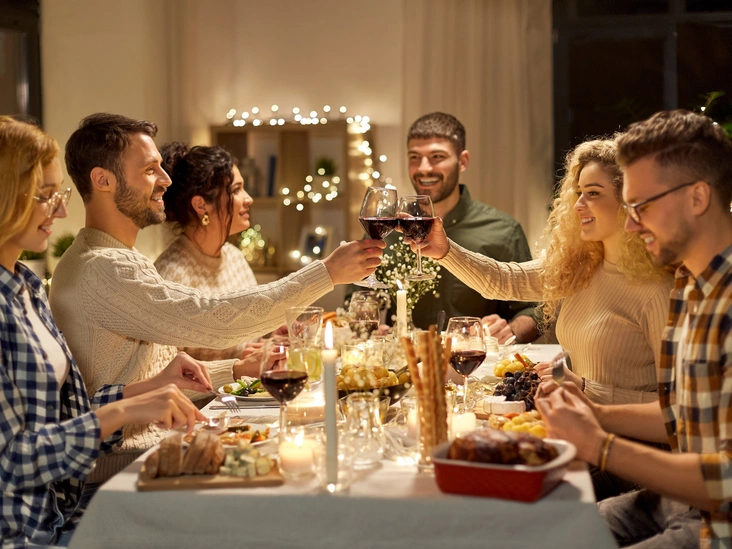 Например, вместо жирного куска свинины запеките индейку или рыбу. Вместо многослойных тортов сделайте порционные десерты с фруктами. Замените майонезные салаты на легкие закуски.