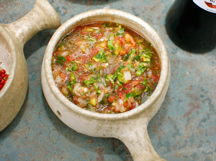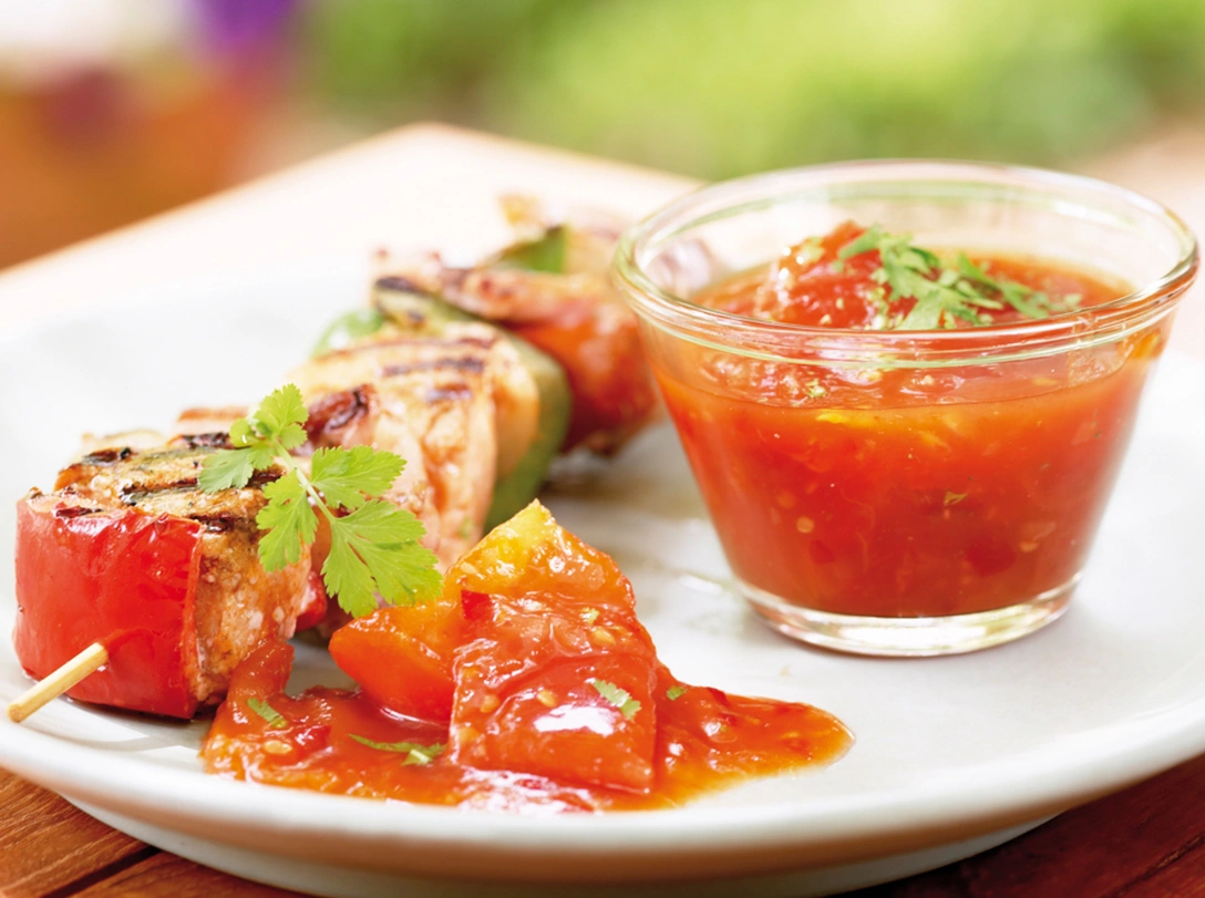 Сальса ─ еще один гость из мексиканской кухни. Основу сальсы составляют томаты, а непременный компонент ─ перчик чили. Еще одно обязательное условие, о котором нельзя забывать ─ охлаждение перед подачей на стол. Традиционно сальса составляет хорошую компанию начос ─ кукурузным чипсам. Но мы предлагаем попробовать его с блюдами, приготовленными на гриле ─ он станет небанальной заменой «шашлычному» овощному салату.