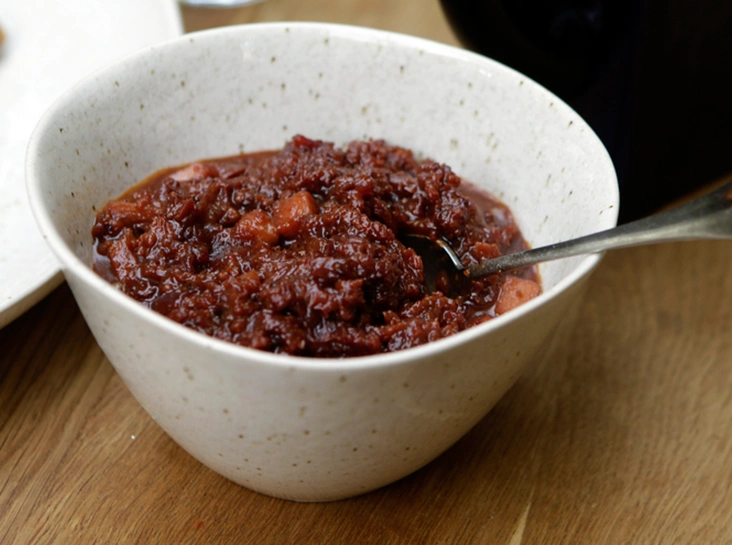 Соус мостарда ─ тоже итальянец. Очень часто мостарду называют вареньем ─ из-за практически идентичного процесса приготовления. Он, кстати, единственное, что может помешать вам насладиться насыщенным пряным вкусом здесь и сейчас: чтобы побаловать гостей мостардой, придется ждать недели 3-4, пока она настоится. Видом мостарды великое множество: так, в одном рецепте соуса фрукты варят целиком, а другой готовится на основе винного сусла. Мы предлагаем промежуточный вариант на основе винограда, который завораживает свои волшебным сладко-пряным коричным ароматом.