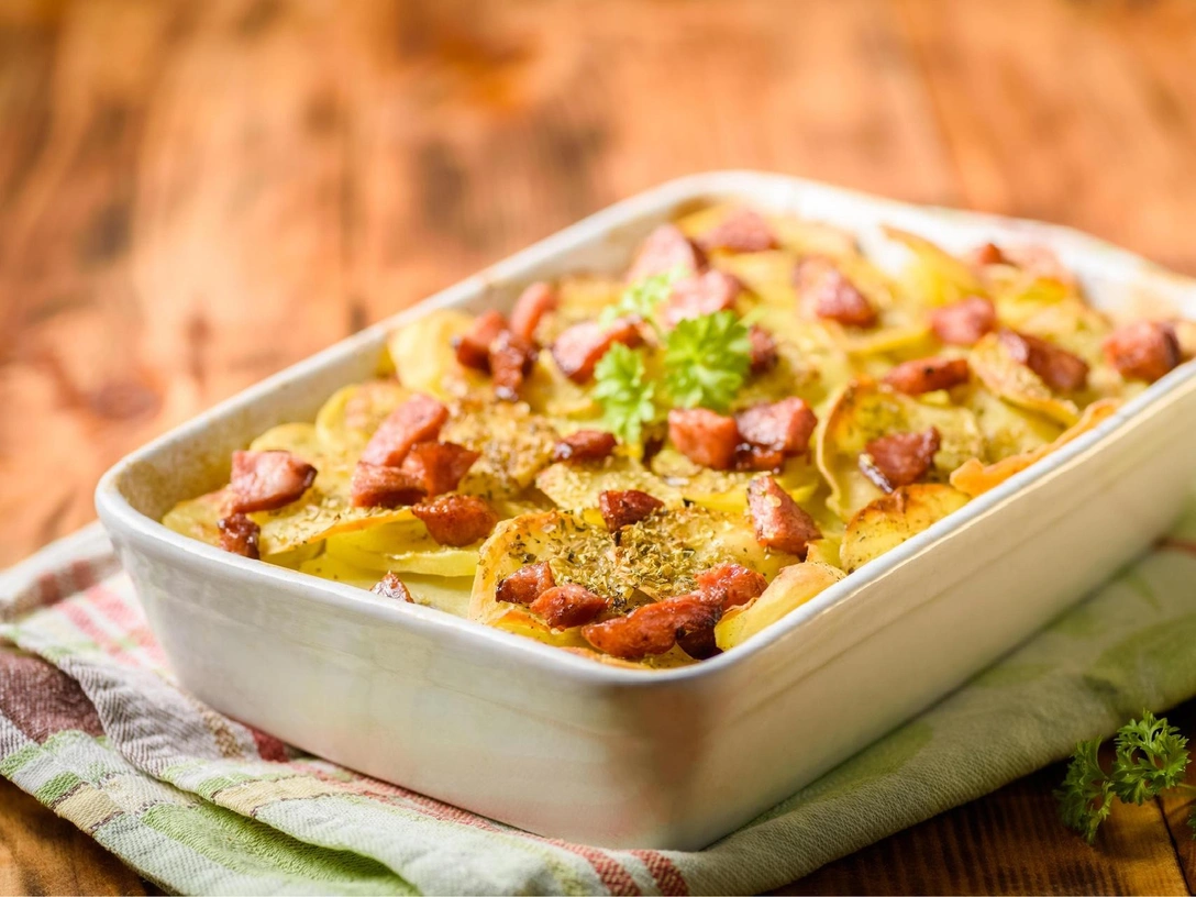 Запеканка — это одно из самых простых блюд, так как в основном оно готовится в духовке. Своим вариантом запеканки поделился британский шеф-повар Джейми Оливер. Среди ингредиентов сезонные осенние яблоки, сочные сосиски, питательное картофельное пюре и нежный соус на молоке. Приступим к готовке!