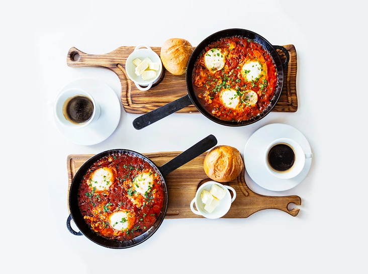 Шакшука — это традиционное восточное блюдо из яиц, свежих помидоров, чеснока, специй, оливкового масла и трав, подающееся в порционной сковороде с большим куском хлеба или лепешкой. Многие уверены, что шакшука — блюдо израильское. Более того, точно также считают и сами израильтяне, часто называя его «еврейской яичницей». На самом же деле еврейская кухня некогда позаимствовала рецепт у… арабской. Да-да, родина шакшуки — Ливия. Но, будем справедливы — именно в Израиле это блюдо не только прижилось, но и обросло множеством модификаций на любой вкус.