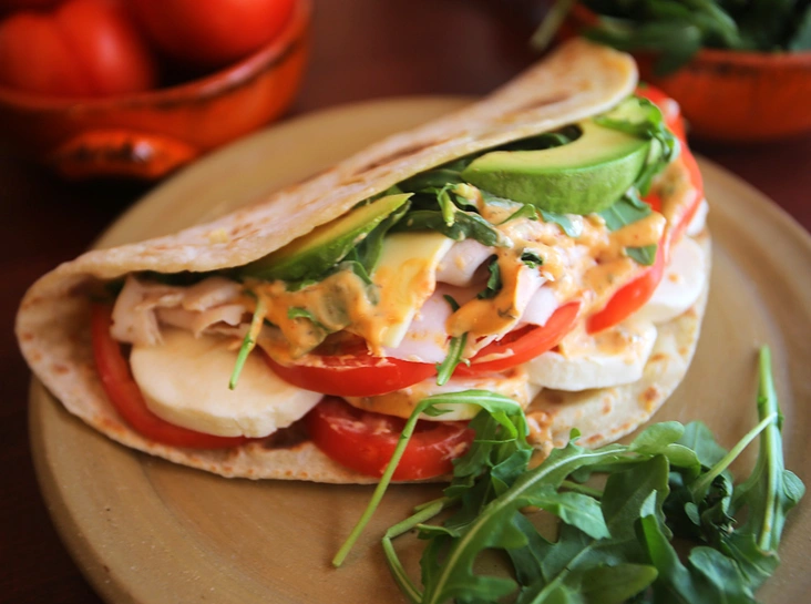 Внутри пьядины может быть все, что придется по вкусу. Пьядина — это закуска, которую можно сочетать с любыми начинками: прошутто, панчетта, брезаола, салями, мягкие и твердые сыры, руккола и базилик. Наш выбор — пьядина с ветчиной и кусочками жареной колбасы «Сальсичча» или более «сливочная» ─ с сыром из региона Эмилия-Романья «Squacquerone» и спелой горгонзолой.