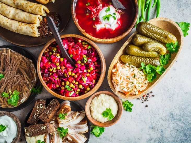 Советская кухня объединяла тысячи рецептов супов, горячих вторых блюд, салатов и десертов — многие из нас до сих пор помнят вкус традиционного заливного из судака, которое подавалось к столу по праздникам, рыбы под маринадом и бутербродов со шпротами. Предлагаем поностальгировать и освежить в памяти культовые рецепты, которые обрели невероятную популярность в СССР и передавались из поколения в поколение.