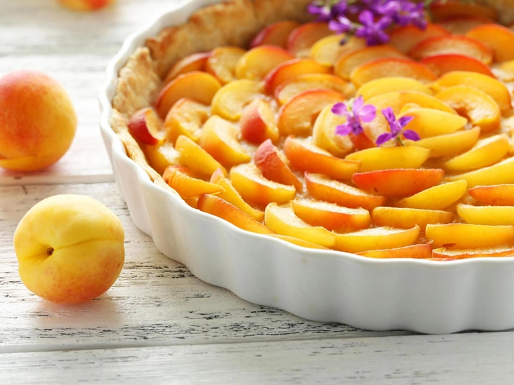 Абрикосы содержат флавоноиды, которые очищают наши сосуды, а также витамины Е и С, которые улучшают состояние кожи и помогают противостоять солнцу. В России сезон абрикосов наступает в июне, а заканчивается уже в августе. Так что фрукт можно либо заморозить, либо делать выпечку из него только летом. Зимой же можно добавить в пирог грушу, яблоки или бананы — рецепт универсален и подойдет под ваши любимые фрукты и ягоды.