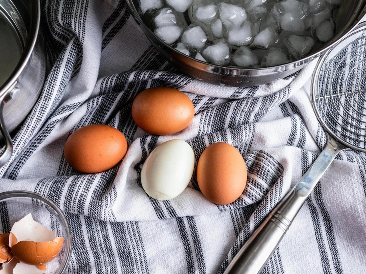 Оставьте яйца в воде на 2 минуты, а затем очистите.