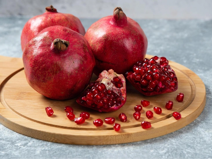 В гранатовый сезон ищите пухлые, круглые плоды. При этом важно понимать: чем дольше гранат хранится, тем больше он высыхает, поэтому переспелые гранаты будут иметь форму звезды, а не шара, поскольку толстая кожица вокруг семян начнет сморщиваться. Спелый гранат должен быть достаточно увесистым, без порезов и вмятин.