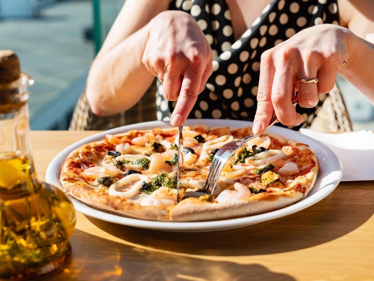 Эксперт объяснил: «Пиццу можно есть руками — чистыми руками, конечно. Каждый ломтик берут и загибают внутрь. Если ломтик становится немного мягким, вы можете подержать его другой рукой».