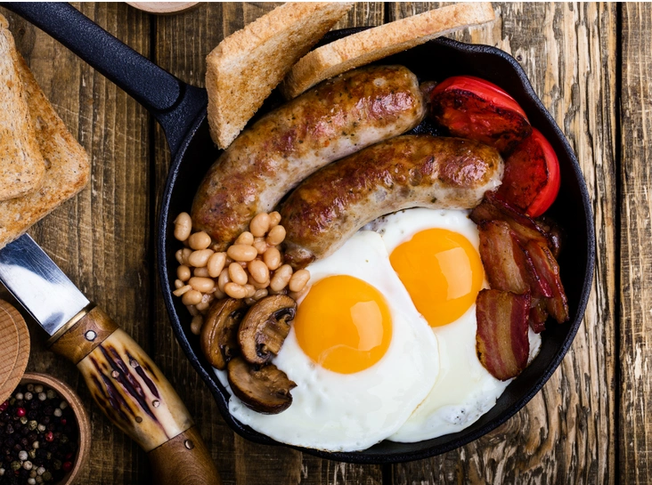 Английский завтрак или Full English Breakfast, как называют его жители Великобритании, по сути является одним цельным блюдом, состоящим из множества элементов. В основной состав входят яйца, бекон, фасоль и колбаски, однако при желании трапезу можно дополнить еще массой ингредиентов.