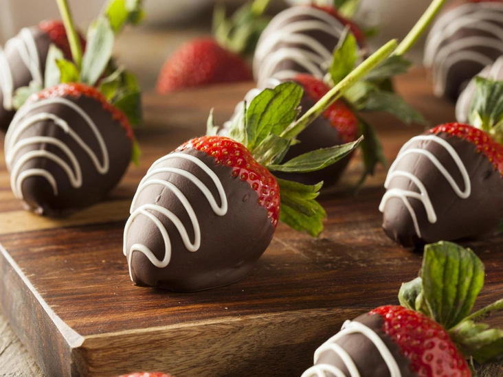 Хотите сделать необычный мраморный рисунок? Тогда налейте в стаканчик белый, темный и розовый шоколад, слегка смешав их. Затем окуните туда ягодку и любуйтесь волшебным результатом.