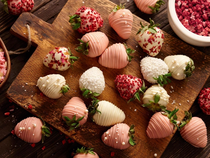 Ягоды уже выглядят очень аппетитно, но чтобы сделать их еще более эстетичными и соблазнительными, посыпьте клубнички сверху кокосовой стружкой, кондитерскими бусинками или крошечными сердечками.