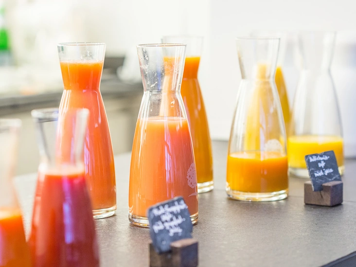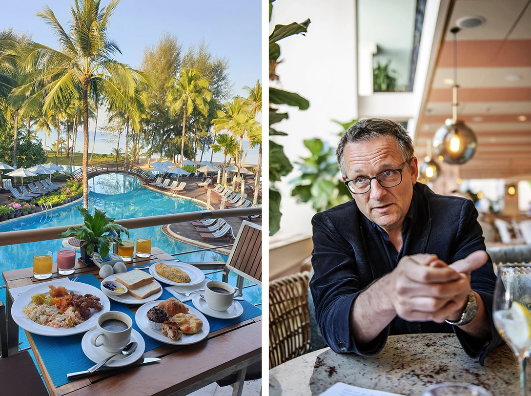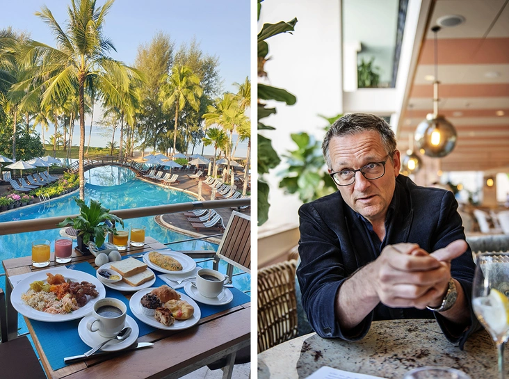 На завтраках в отелях обычно большой ассортимент сладких фруктовых соков. Однако чаще это не свежевыжатые, а пакетированные напитки, которые содержат много сахара и вредные консерванты. Поэтому Майкл Мосли советует ограничиться кофе, чаем или минеральной водой.