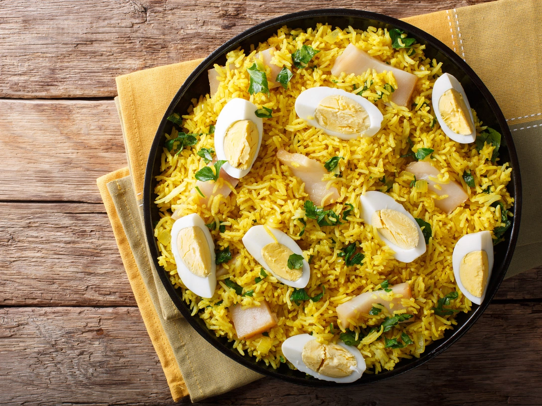 Кеджери — так называется европейское блюдо, состоящее из рыбы, риса и сваренных вкрутую яиц, которое любит есть на завтрак сама Елизавета II.«Это одно из самых популярных блюд на завтрак, которое я готовил для королевской семьи. Первоначально его готовили из бобов, риса и чечевицы, но к XIX веку рецепт стал более изысканным, с добавлением копченой пикши и вареных яиц», — рассказывает Макгрейди (читайте также: Повод найдется: рецепты завтраков с яйцом).