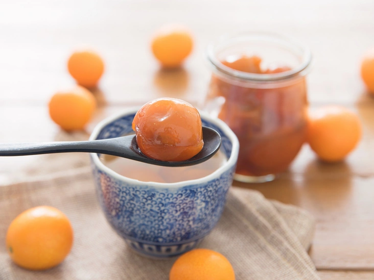 Кроме того, самый маленький представитель семейства цитрусовых (его размер не превыше пяти см) богат витаминами C и P, а также пектиновыми веществами. Плоды кумквата не содержат в себе нитратов и прочих вредных примесей, способствуют улучшению пищеварения, снижению уровня холестерина, выводят шлаки из организма и положительно влияют на нервную систему и работу мозга, а жители Китая традиционно используют растение для лечения простуды и похмелья — считается, что содержащиеся в плодах соединения облегчают симптомы болезни и позволяют мгновенно нейтрализовать последствия употребления алкогольных напитков.