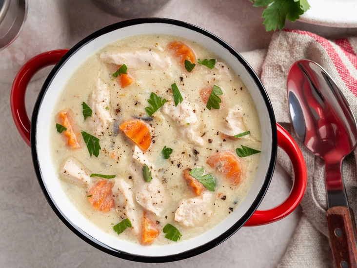 Осень — лучшее время для того, чтобы наслаждаться горячими и наваристыми супами (при желании — не только на обед, но и на ужин). А значит, это отличный период еще и для того, чтобы выучить пару новых рецептов вкусных и сытных первых блюд. В частности, предлагаем приготовить нежный сливочный куриный крем-суп, который точно не оставит равнодушными ни вас, ни ваших близких (читайте также: Тыквенный суп: простой и вкусный рецепт для тех, кто хочет согреться).
