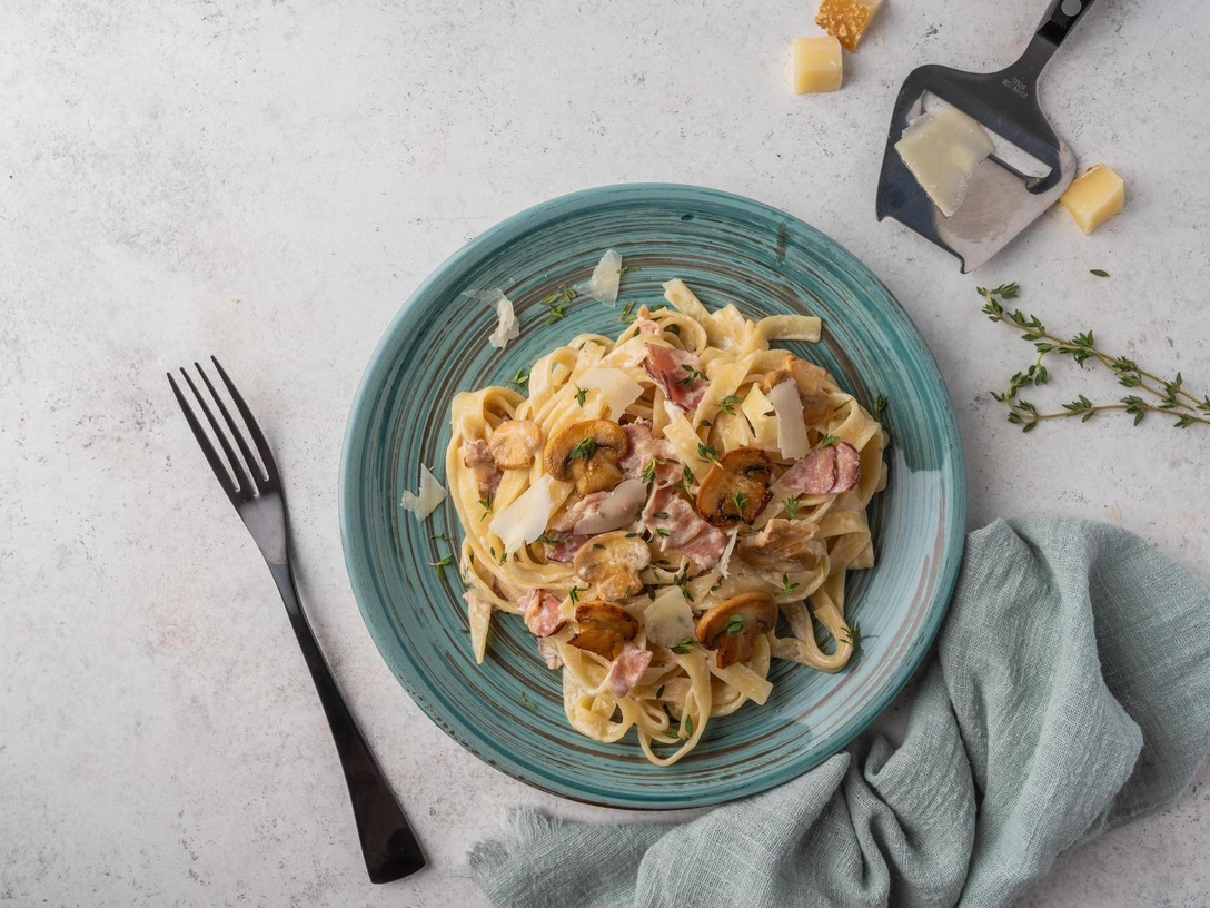 Можно смело сказать, что рецепты Мэри Берри получили королевское одобрение. Известно, что принцесса Кэтрин Уэльская (которая обожает готовить) часто выбирает что-нибудь на ужин именно из кулинарной книги от этого повара. Правда, у Мэри Берри больше сладких рецептов — но есть и сытные вариант, которые сводят с ума весь мир. Один из таких — паста с пармской ветчиной и грибами в нежном сливочном соусе.